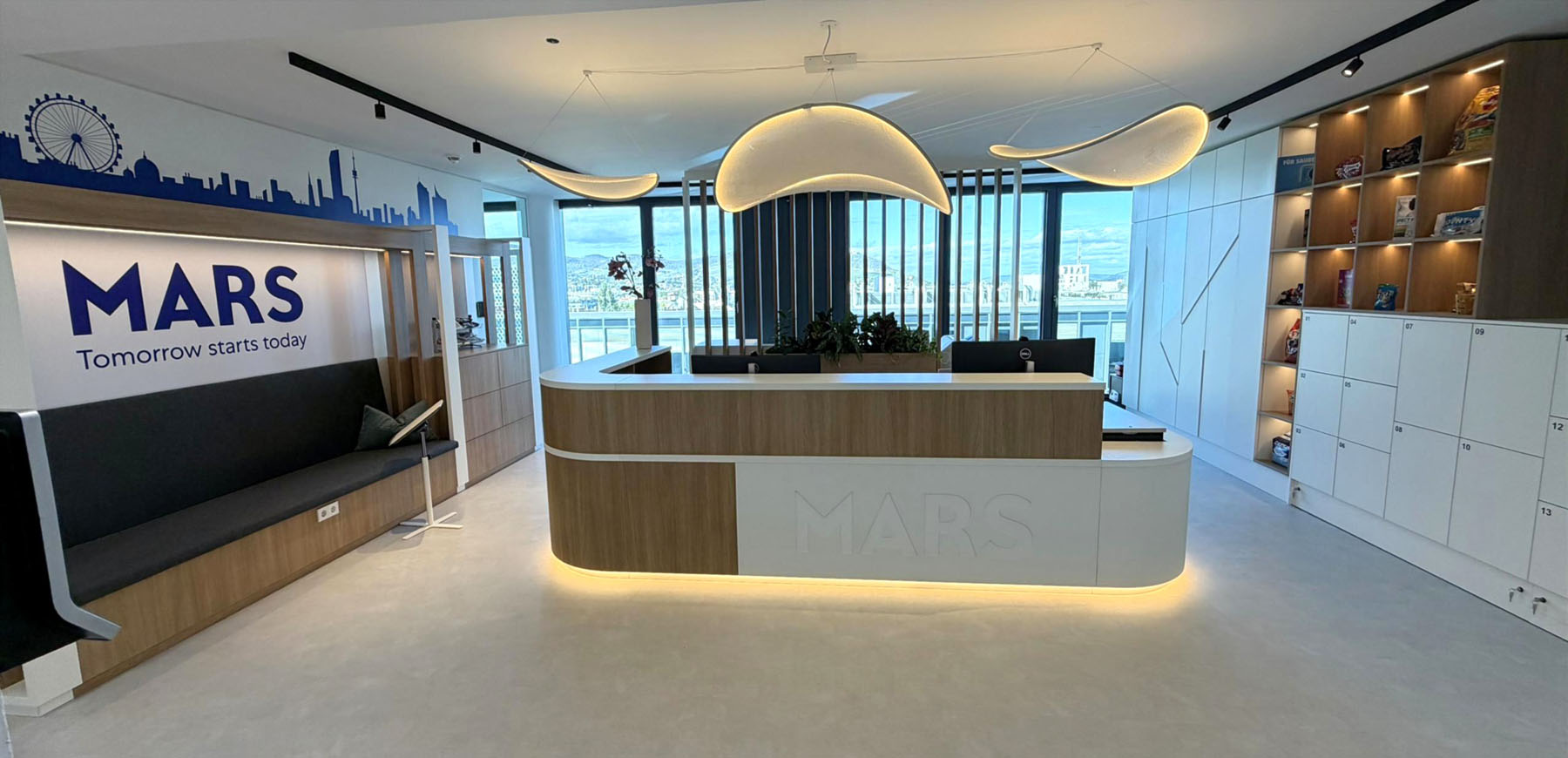 Für Mars Austria war nach 10 Jahren die Zeit gekommen, zwar im gleichen Gebäude, aber in ein neues Büro zu übersiedeln. Wichtige Anforderungen waren Desk sharing zu etablieren und effizientes Arbeiten dank modernster IT zu ermöglichen. Und noch was: Pets welcome! Das erlebnisorientierte Design des Büros vermittelt den Mitarbeitern und Besuchern die Geschichte, Kultur, Werte und natürlich den MARS Purpose. Vor allem im Eingangsbereich war es uns wichtig, die starke Markenidentität, aber auch den lokalen Bezug zu Wien hervorzuheben.